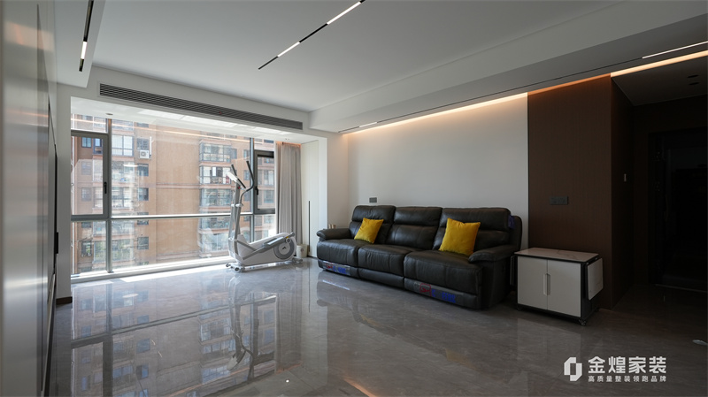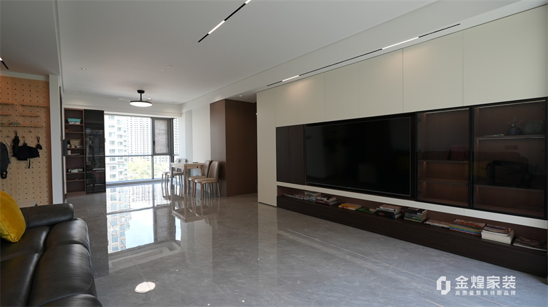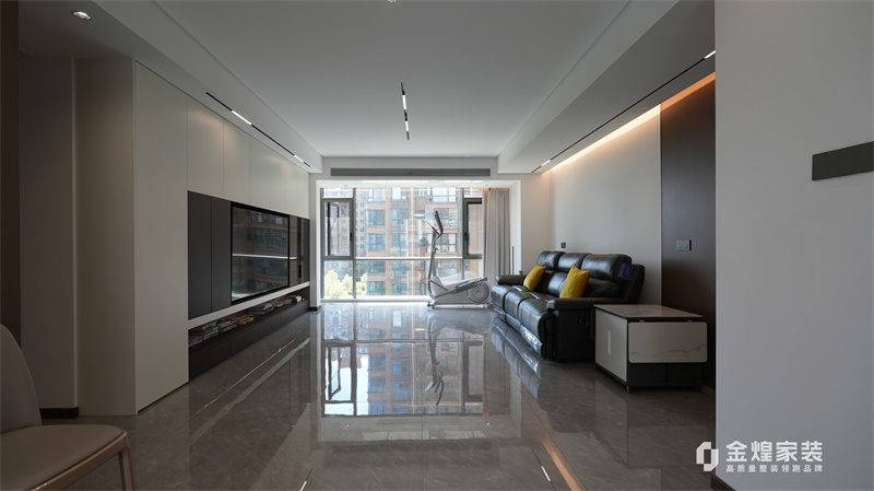 整體色調(diào)以黑白灰為主,簡潔明快,沒有過多的裝飾,體現(xiàn)了現(xiàn)代意式風(fēng)格的特點(diǎn)??蛷d的布局開闊,家具的選擇也以簡約為主,如黑色皮質(zhì)沙發(fā)、簡潔的電視柜等,都符合現(xiàn)代人的審美。