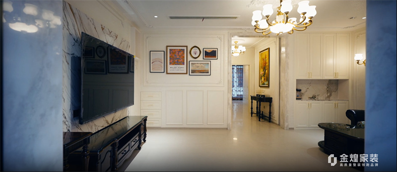 從客廳的皮質(zhì)沙發(fā)、木質(zhì)茶幾、華麗的吊燈,到墻上的裝飾畫,都體現(xiàn)了法式風格的經(jīng)典元素。同時,整體色調(diào)以暖色為主,營造出溫馨的氛圍。