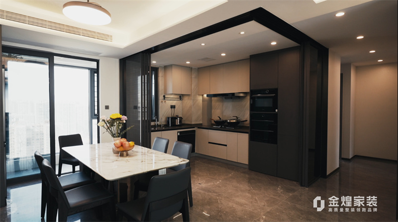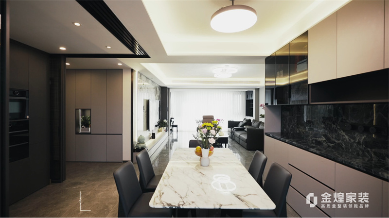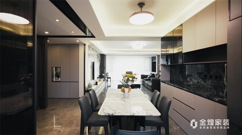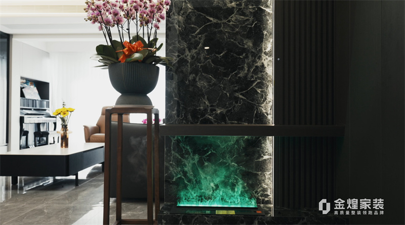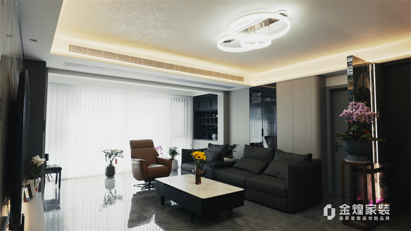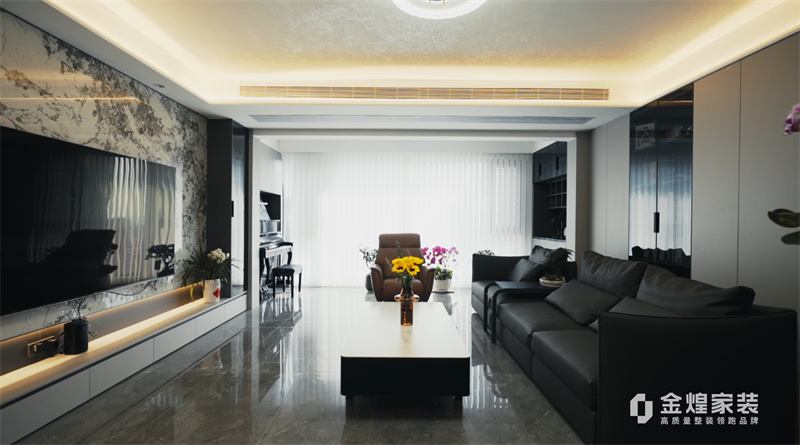 電視背景墻的大理石紋理、簡潔的家具線條以及精心布置的燈光設計,都體現(xiàn)了現(xiàn)代輕奢風格的特點。同時,通過添加一些鮮花和裝飾品,增加了空間的溫馨感和生活氣息。