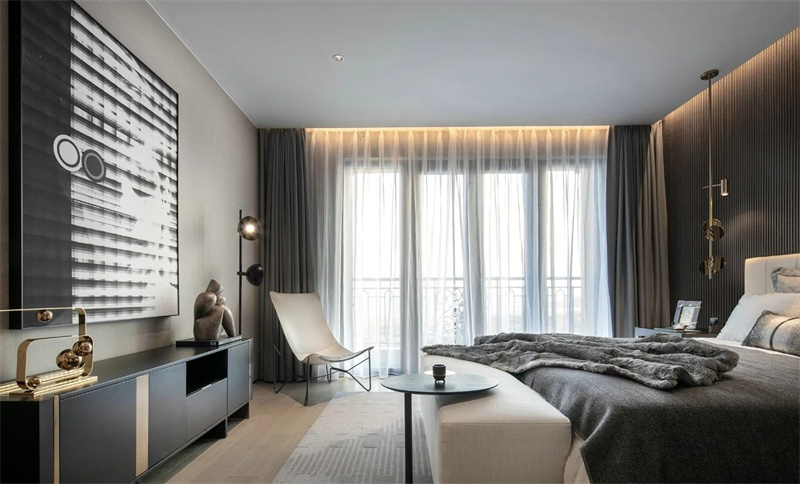 臥室的設(shè)計上以簡約的線條為核心元素,意式輕奢風(fēng)在講述真正的永恒經(jīng)典。柔和質(zhì)感燈光設(shè)計營造出豪華的感覺,搭配高檔質(zhì)地且色彩柔和的床品,營造出溫馨而舒適的睡眠環(huán)境。