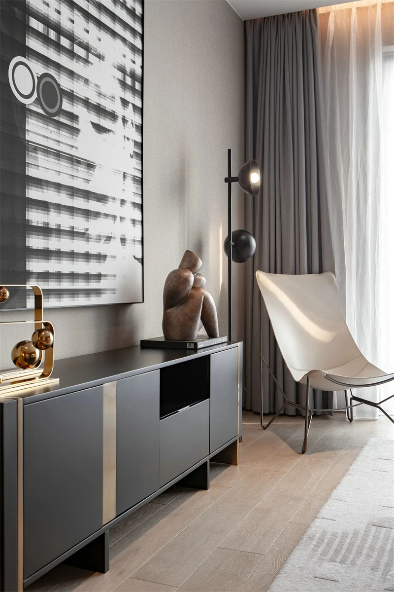 設(shè)計師將意大利經(jīng)典的設(shè)計美學(xué)與現(xiàn)代簡約相結(jié)合,通過簡潔的線條、柔和的中性色調(diào),精致的材質(zhì)細節(jié),營造出一種低調(diào)卻彰顯主人品味的奢華感。