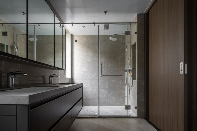 簡約的洗手盆、淋浴設備,并盡量減少不必要的裝飾物和陳設,這樣的布置使整個衛(wèi)生間看起來干凈而雅致。適合的色彩、家具和照明搭配,保持空間干凈整潔,打造出一個舒適、寧靜且具有品質感的衛(wèi)浴空間。